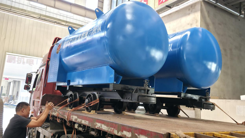 Поставленная система пожаротушения с использованием жидкого диоксида углерода состоит из пяти основных компонентов: передвижной установки для тушения пожаров жидким диоксидом углерода, предназначенной для использования в шахтах; шахтного платформенного вагона; системы сбора; воздушно-температурного испарителя; устройства регулирования и стабилизации давления. Все компоненты соединены между собой с помощью специальных трубопроводных фитингов и уплотнений. Система отличается высокой степенью интеграции, удобством перемещения и стабильностью работы. Благодаря уникальным преимуществам жидкого углекислого газа в области пожаротушения, таким как инактивация кислорода, поглощение тепла и охлаждение, а также адсорбция и ингибирование химических реакций, система позволяет быстро потушить очаг возгорания, значительно снизить температуру в зоне пожара и разбавить концентрацию кислорода, эффективно устраняя различные источники пожарной опасности под землей, всецело защищая жизнь шахтеров и обеспечивая безопасность добычи полезных ископаемых и производства в шахтах.